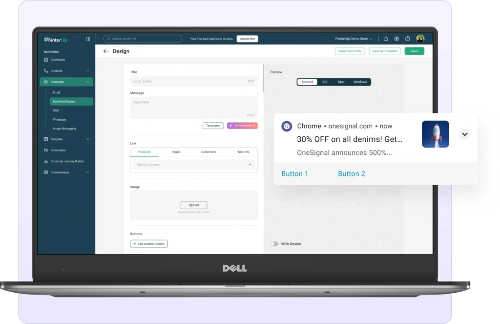 The Push Notifications to help businesses engage users in real time through instant, targeted notifications. Whether it’s promotional offers, push notifications ensure that users stay informed and connected.